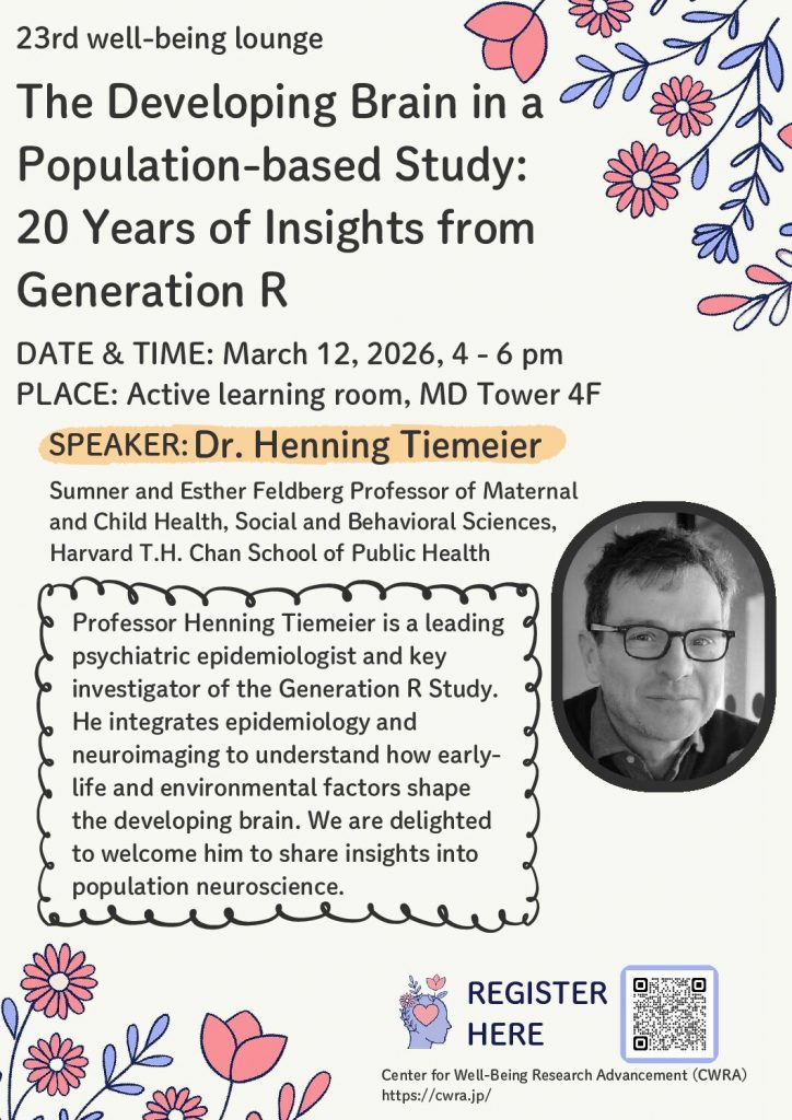 【CWRA】2026/3/12:第23回ウェルビーイングラウンジ「The Developing Brain in a Population-based Study:20 Years of Insights from GenerationR」