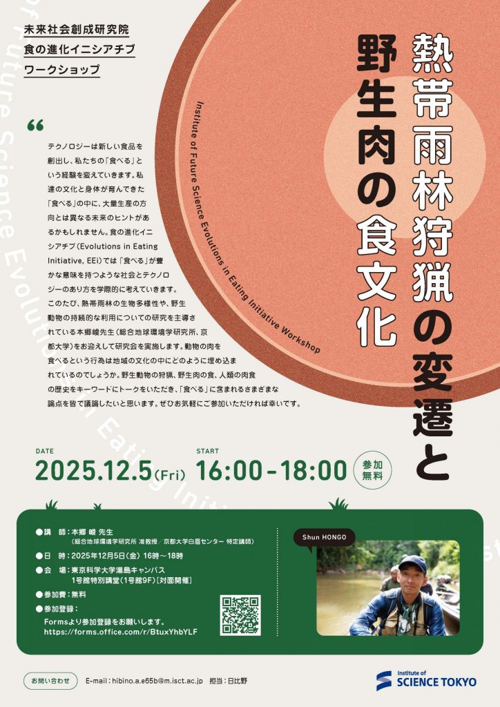 【12/5開催】食の進化イニシアチブワークショップ「熱帯雨林狩猟の変遷と野生肉の食文化」
